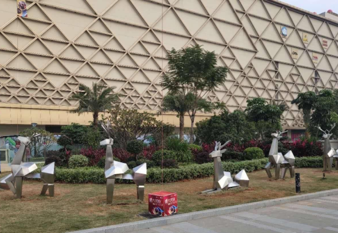 不銹鋼雕塑制作表面很容易顯得花而亂,影響整體的效果。所以在后期要進行表面統一打磨,選擇合適的砂紙統一的規律進行打磨,保證作品在不同光線下色澤統一。