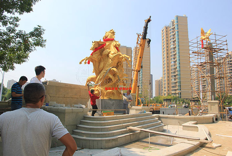 不銹雕塑, 飛馬雕塑,現(xiàn)場安裝中