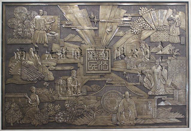 南京鍛銅浮雕設計、制作、運輸、安裝,內容可度身設計,材質為紫銅、黃銅,厚度1.2-1.5毫米,造型古樸大方。